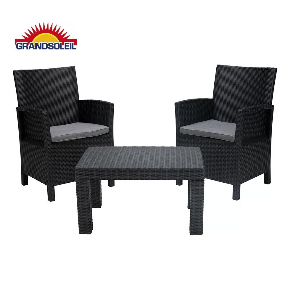 Táto súprava vonkajšieho nábytku s efektom ratanu je ideálna na balkón, do záhrady alebo na terasu, tvorí ju dve kreslá a malý stôl. Tmavé farby sú vyrobené z recyklovaného Greenpolu. Súprava obsahuje vankúše pre optimálnu praktickosť a pohodlie, s odnímateľnými poťahmi pre ľahké čistenie. Súprava Tropea je elegantným, funkčným a veľmi pohodlným miestom pre zábavu s rodinou alebo priateľmi. Dozviete sa viac o našom recyklovanom Greenpolu nižšie.