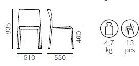 Táto stolička je vyrobená technológiou vstrekovania plynom zo zosilneného polypropylénu s prídavkom sklenených vlákien, čo zabezpečuje výnimočnú pevnosť a dlhú životnosť. Zároveň je držiteľom certifikátov GREENGUARD a GREENGUARD GOLD, ktoré zaručujú nízke emisie a ohľaduplnosť k životnému prostrediu.