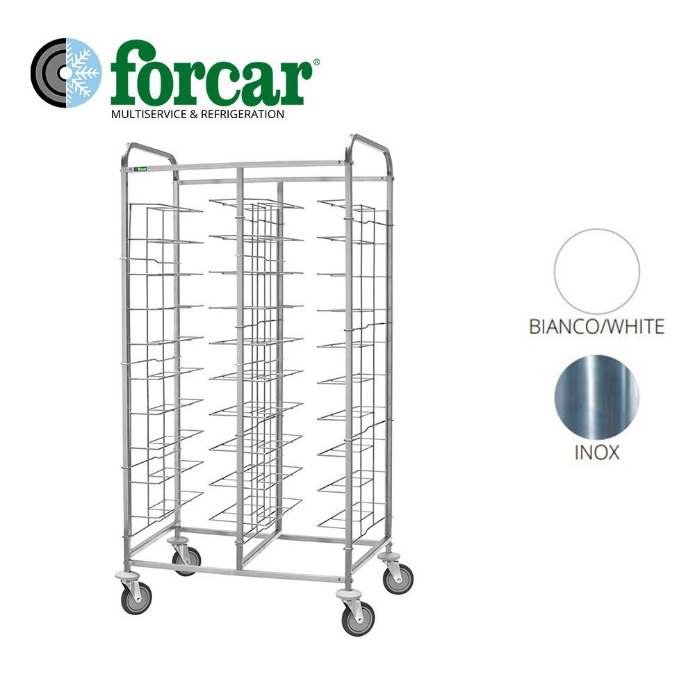 Univerzálny vozík na tácky forcar CA 1465 je ideálnym riešením pre každú profesionálnu kuchyňu alebo jedáleň. Tento vozík je dostupný v prevedení s bočnými panelmi z bieleho perfexu alebo nehrdzavejúcej ocele, čo zabezpečuje jeho dlhú životnosť a estetický vzhľad. Konštrukcia vozíka je vyrobená z kvalitnej nehrdzavejúcej ocele, ktorá je odolná voči korózii a ľahko sa udržiava. Vozík je vybavený vodiacimi lištami z chrómovanej oceľovej mriežky, ktoré poskytujú stabilitu a bezpečnosť pri manipulácii s táckami. Gumové tlmiče nárazov chránia vozík aj okolie pred poškodením pri pohybe. Multidirekčné kolieska s priemerom 125 mm umožňujú ľahkú manipuláciu a presné manévrovanie v obmedzených priestoroch. Vozík má kapacitu 20 plechov a je dostupný vo farbách Basic, INOX a WHITE. Rozmery zariadenia sú 95 x 62 x 175 cm, s hrubou hmotnosťou 23 kg a čistou hmotnosťou 21 kg. Nádoby a panvice nie sú zahrnuté.