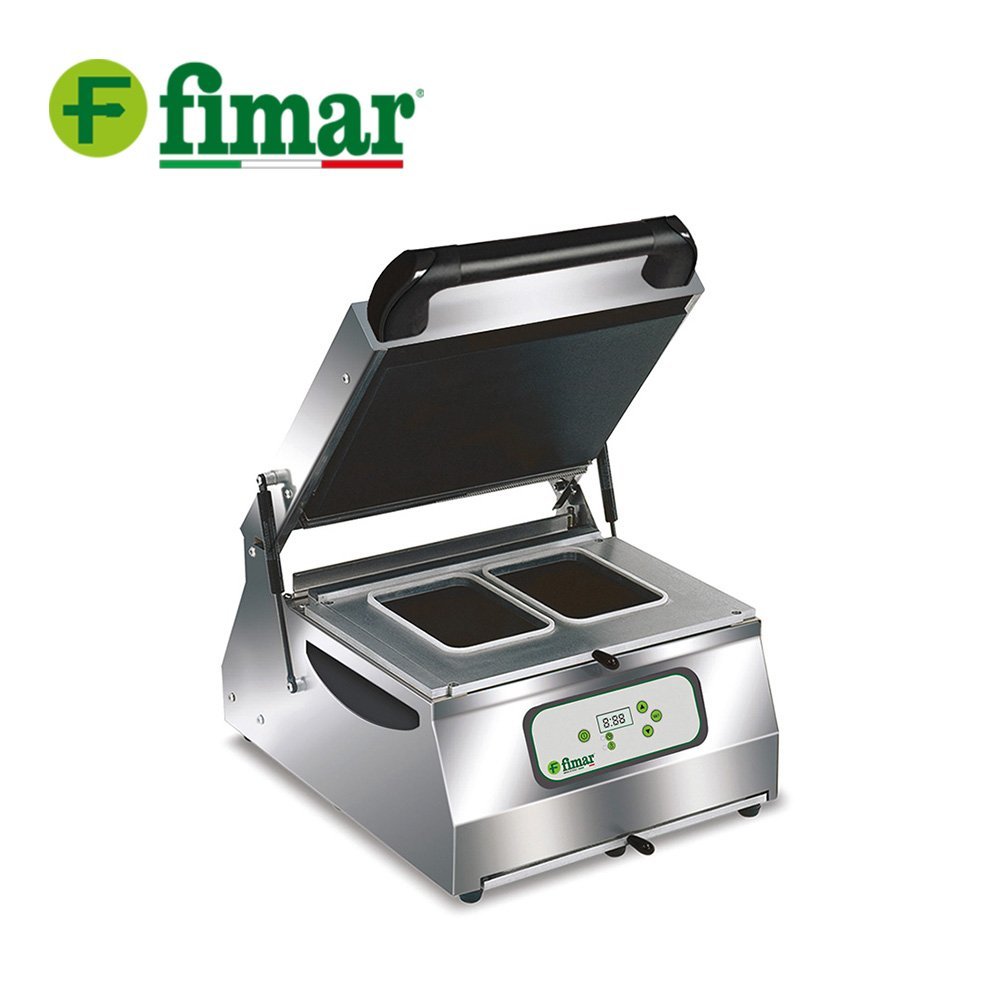 Polovautomatický termoizolačný stroj na balenie produktov do misiek. Umožňuje hygienické utesnenie produktov v miskách na zlepšenie ich uchovania – manuálny pracovný cyklus – digitálne ovládanie – formy nie sú súčasťou balenia.