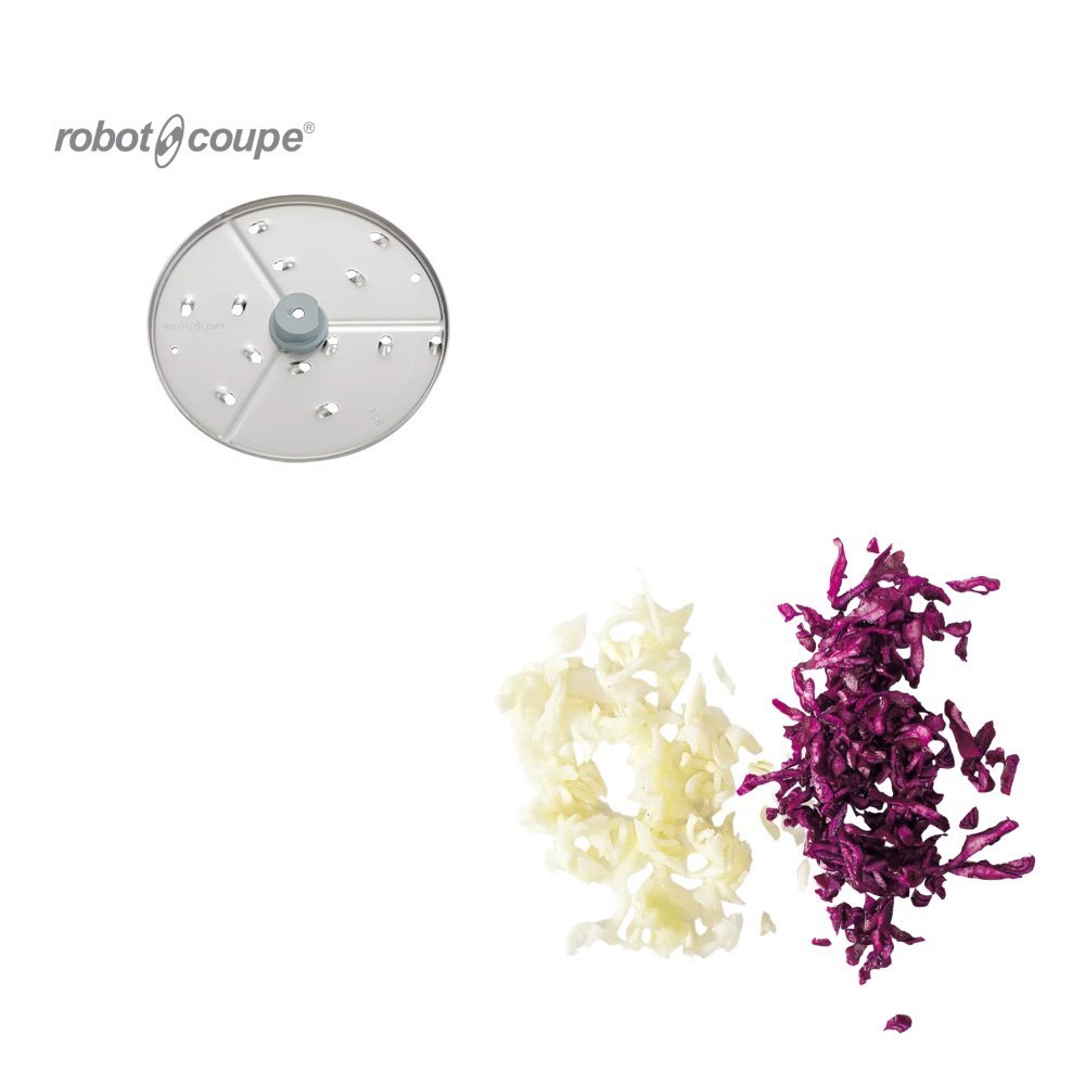 Robot Coupe Grater 6 mm je disk na strúhanie pre modely CL 20, CL 30 Bistro, CL 40, R 301, R 401, R 402. Umožňuje efektívne a rýchlo strúhať rôzne ingrediencie, ako sú ovocie, zelenina a syr, na jemno s hrúbkou 6 mm. Je navrhnutý pre intenzívne používanie, s vysokou spoľahlivosťou a dlhou životnosťou vďaka konštrukcii z nehrdzavejúcej ocele. Disk je navyše ľahko čistiteľný a vhodný do umývačky riadu.