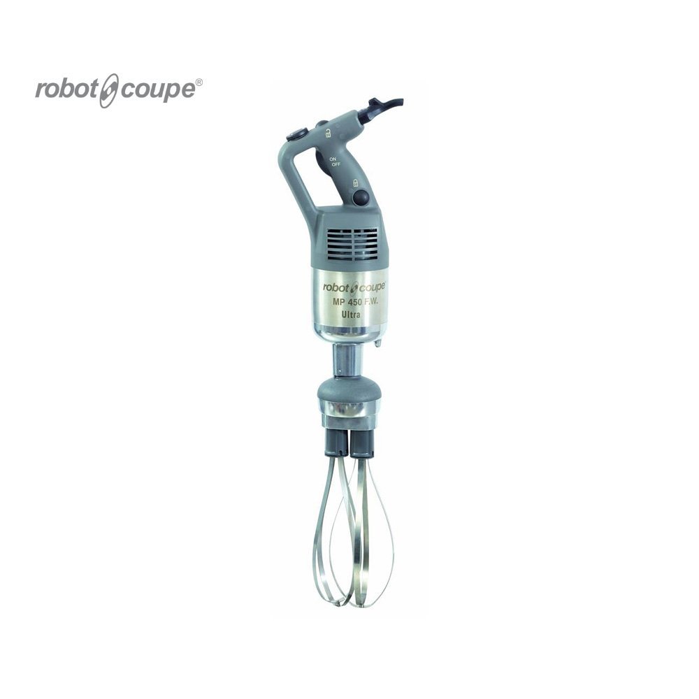 Robot Coupe MP 450 FW Ultra je ponorný mixér s maximálnou kapacitou dávky 100L, určený pre intenzívne použitie. Vyznačuje sa vysokovýkonným motorom pre zvýšenú efektivitu, odolnosťou vďaka častiam z nehrdzavejúcej ocele, a patentovaným systémom pre ľahké čistenie. Ergonomická rukoväť a praktické riešenia na skladanie zabezpečujú pohodlné použitie. Ideálny na mixovanie, miešanie, šľahanie, miesenie a emulgáciu.