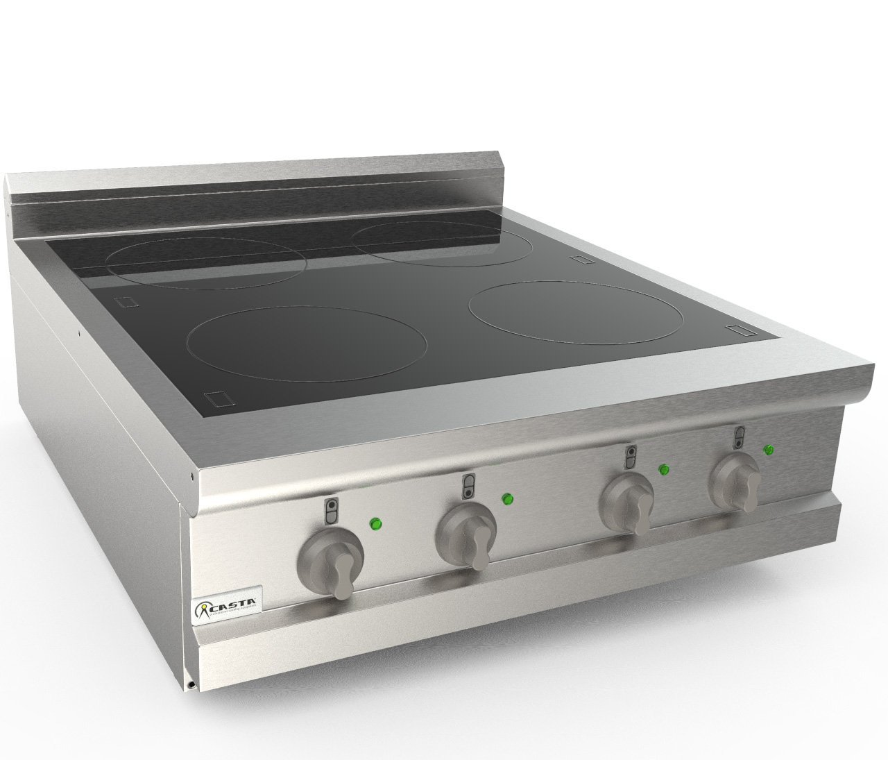 Celé z AISI 304 18/10 nehrdzavejúcej ocele škótskej brite. Pyroceramová doska s elektrickými odpormi schopná ohrievať varnú dosku žiarením. Vykurovací okruh v kruhových zónach. Zóny sú označené správnymi sieťotlačami, ktoré umožňujú správne umiestnenie panvíc. Chladivé rukoväte a gombíky vyrobené z tepelne odolného materiálu. Nastaviteľné nohy z nehrdzavejúcej ocele AISI 304 18/10.