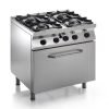 Pracovná doska z nehrdzavejúcej ocele AISI 304 18/10 hrúbky 1,0 mm. Konštrukcia z ocele AISI 430 s hrúbkou 0,8 mm. Chrómované horáky: 6,0 kW a 3,5 kW. Plynové ventily, termočlánok. Manuálne zapaľovanie. Statická elektrická rúra GN 2/1, 2 opláštené špirály (dolné a horné), 2 nezávislé termostaty, regulácia teploty od 0 ° do 300 ° C. Komora z nehrdzavejúcej ocele AISI 430. Dvierka rúry z nehrdzavejúcej ocele 430. Tesnenie dvierok rúry. Rukoväť rúry a gombíky vyrobené z tepelne odolného materiálu. Nastaviteľné nožičky z nerezovej ocele AISI 304 18/10. Certifikované podľa noriem CE.
