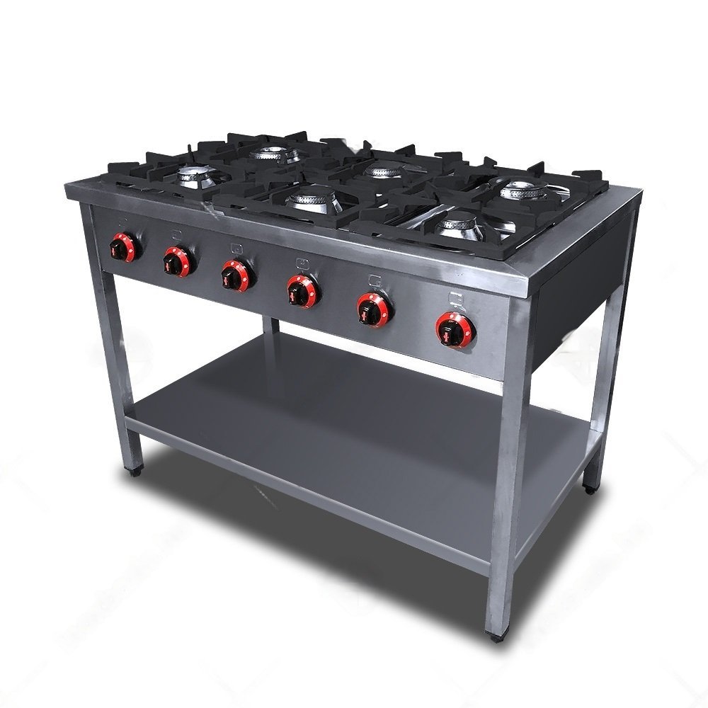 Celonerezové prevedenie, liatinové rošty horákov, vyberateľné misky horákov ohlade lepšieho čistenia, dolná polica, nastaviteľné nohy.