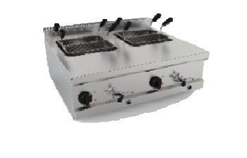 Vhodné na varenie rôznych druhov cestovín (suchých aj čerstvých), ako aj iných potravín (vrátane ryže a zeleniny) vo vode; vhodné aj na varenie v pare pomocou špeciálnych perforovaných nádob. Vyrobené z nehrdzavejúcej ocele AISI 304 Scotch brite (hrúbka pracovnej dosky 2,0 mm) s prepadovým drenážnym systémom, košom na odkvapkávanie a vstavaným zadným komínom. Nerezová oceľ AISI 316, lisované nádrže odolné voči korózii so zaoblenými rohmi (kapacita 12 l), vrátane falošného dna na koše. Predná dvojitá oblasť pre preliatie a odstraňovanie škrobu s odtokovým otvorom a odtokovou policou z dierovaného nerezového koša pred studňou. Plnička vody v nádrži s príkazom na ovládacom paneli. Vypúšťacie potrubie z nehrdzavejúcej ocele ovládané guľovým ventilom s ľahko prístupnou pákou. Ohrev pomocou nerezových pancierových vysokoúčinných odporov vo vnútri nádrže pre dosiahnutie maximálneho tepelného výkonu, riadený 50°C-100°C nastaviteľným termostatom, všeobecná výstražná kontrolka + výstražná kontrolka pri zapnutých vykurovacích telesách. Perforované koše z nehrdzavejúcej ocele AISI 304 s žiaruvzdornou rukoväťou; možné rôzne kombinácie košov. Chladivé rukoväte a gombíky vyrobené z tepelne odolného materiálu. Nastaviteľné nohy z nehrdzavejúcej ocele AISI 304.