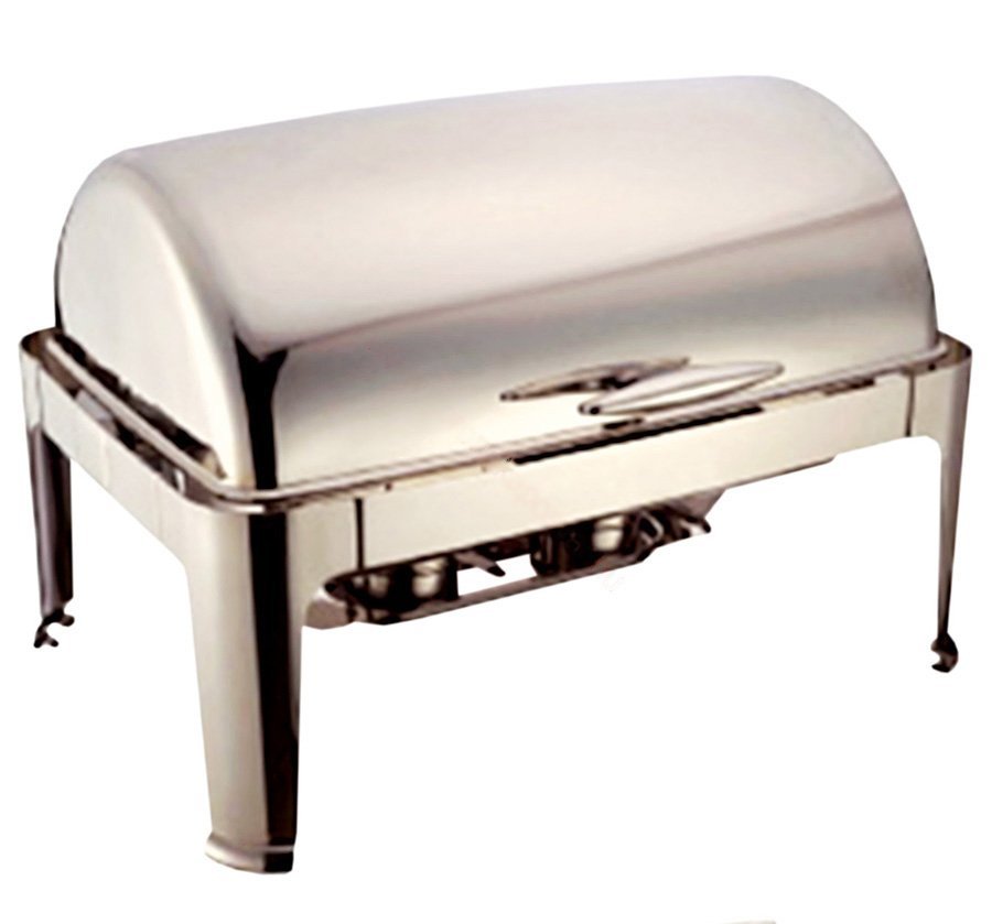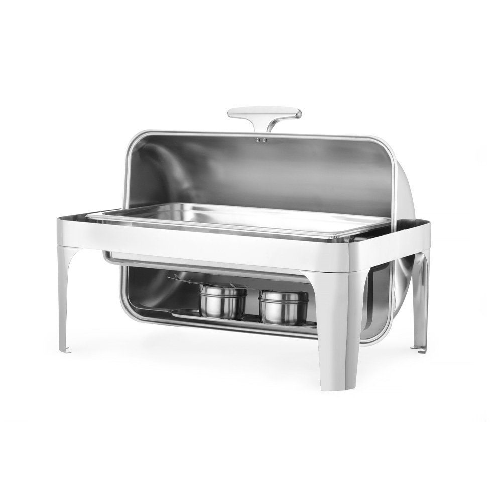 Chafing z nehrdzavejúcej ocele s vyklápacím vekom do 180°, rozmer 64,5×47,5×43,5 cm, objem 9 l. Kuchynská pomôcka určená na udržiavanie jedál v teple. Súčasťou chafingu sú 2 držiaky na horľavú pastu. Stohovateľný.