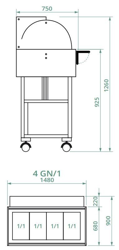 Počet plechov / tácky: 4 x GN1/1 – 150(h) mm