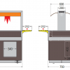 Dolu skrinka na uloženie tanierov, na vrchu kryt z PMMA plastu a s ohrevnými lampami.