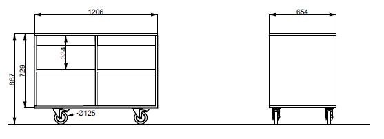 - Vonkajšie rozmery (mm): 1206 × 654 × 887