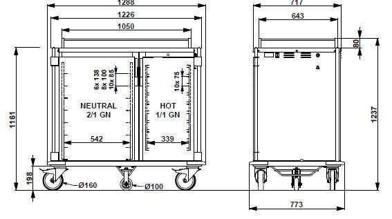 Kapacita: 10x GN 1/1 (vyhrievaný priestor) + 8x GN 2/1 (neutrálny priestor)
