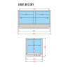 Malý stolový horizontálny vyhrievaný displej so sklenenými policami na pečivo a gastronómiu. Konštrukcia z nehrdzavejúcej ocele so sklami s vysokým indexom lomu na každej strane. Sklenené posuvné dvere na strane operátora a pevné sklo na strane klienta. Spodná vnútorná základňa z nehrdzavejúcej ocele a 1 sklenená polica. Vykurovací systém jedným 700W vykurovacím telesom. Mechanický termostat a ovládací panel na jednej strane. Malá zásuvka z nehrdzavejúcej ocele na vodu (na zvlhčenie vnútorného prostredia).